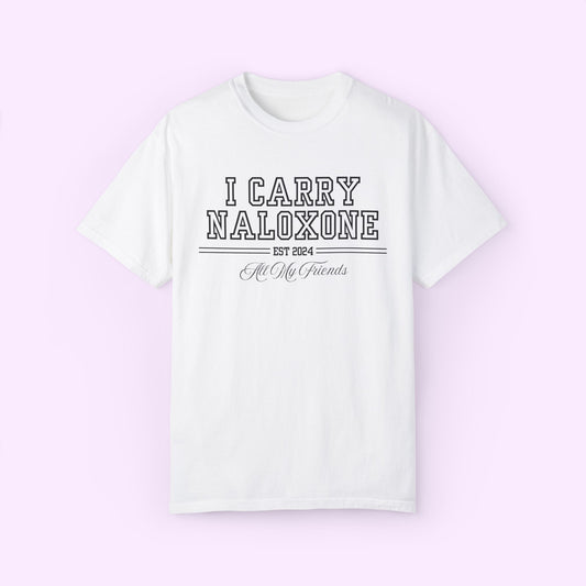 I Carry Naloxone College Shirt - Unisex Comfort Colors Tee
