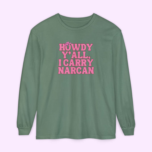 Howdy Y'all, I Carry Narcan - Unisex Long Sleeve Comfort Colors Tee
